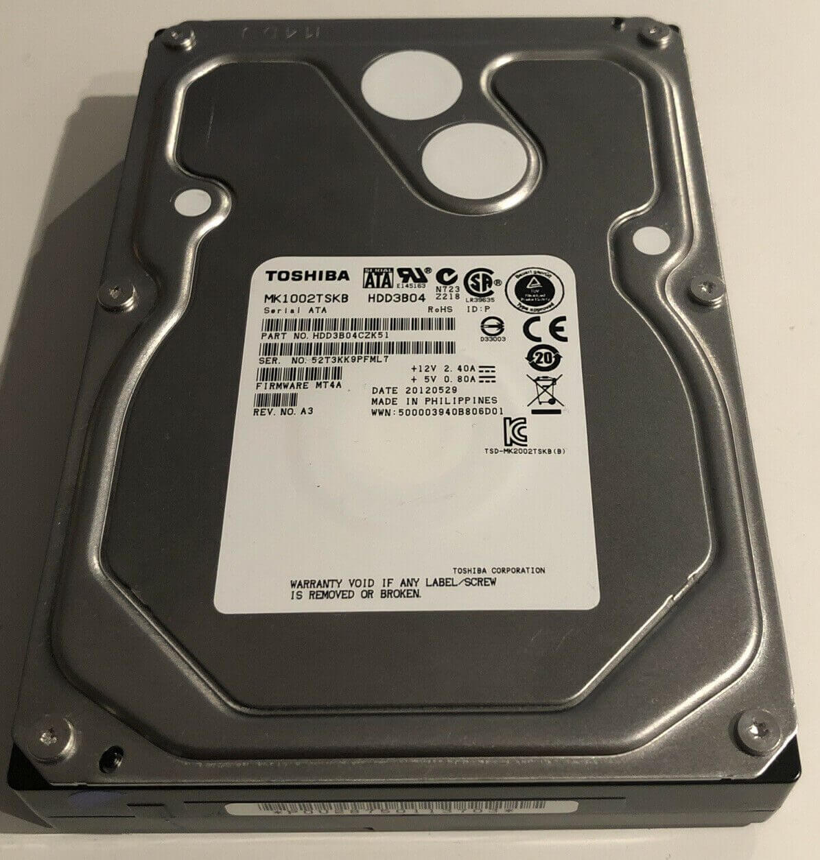 این هارد دیسک داخلی 3.5 اینچی بسیار آسان نصب می‌شود، بنابراین می‌توانید با اطمینان آن را به رایانه‌هایی متصل کنید که از رابط‌های Serial ATA II و SATA II پشتیبانی می‌کنند. با تکنولوژی فوق‌اعاده‌ای که در Toshiba MK1002TSKB گنجانده شده است، می‌توانید با خیالی آسوده همه ویدیوهای ارزشمند، فایل‌های داده و فایل‌های mp3 خود را نگه دارید.