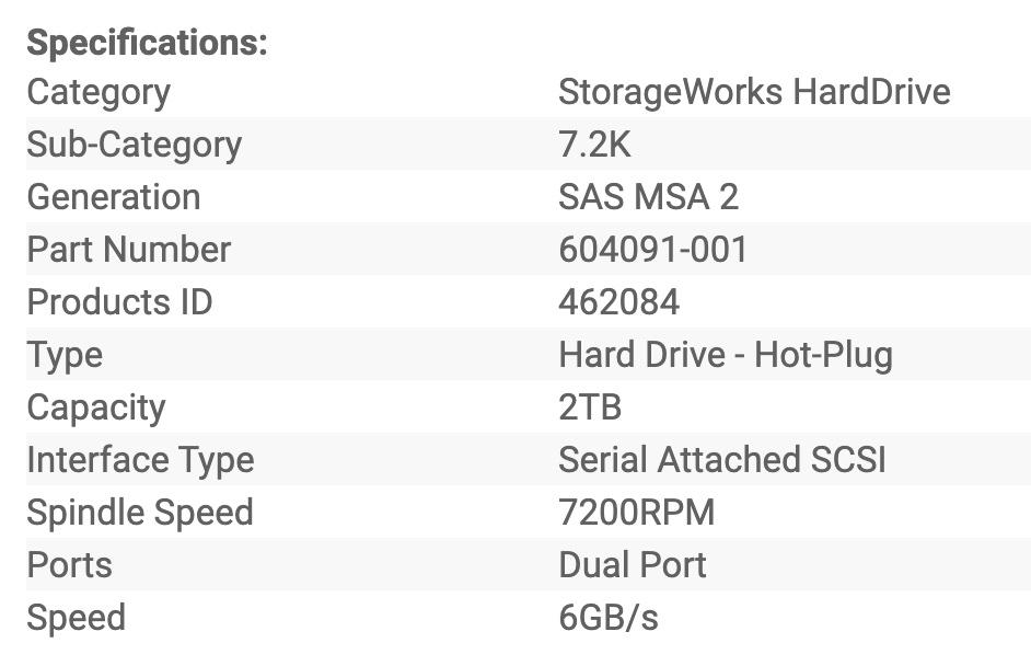 HP MSA2 AW555A 2TB SAS 6G MDL 7.2K